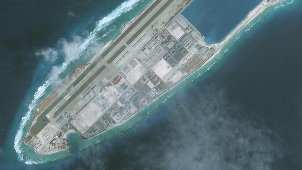 China has long been keen to assert its authority in the South China Sea. In recent years, it has undertaken a huge programme of island-building to stake its claim to the region. Fiery Cross, once a tiny reef, is now a fortified airbase. And this is just one of China’s seven artificial islands in the Sea. But China is not the only one. Bordered by seven states, many others also claim parts of the South China Sea as their own. Experts warn these hotly contested waters could be a flashpoint for conflict in 2018. Why is the South China Sea so important to China? (Photo: Fiery Cross. Credit: CSIS Asia Maritime Transparency Initiative/DigitalGlobe)