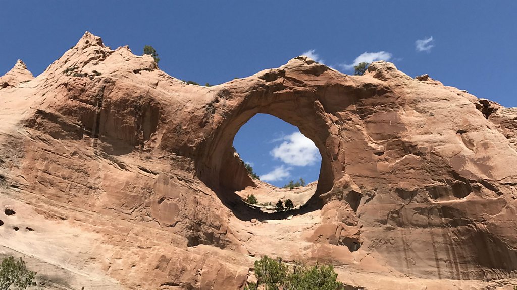 Nanobah Becker discovered that the voices of her grandfather and great-grandfather were among a collection of recordings in the ethnomusicology department, while she was studying at Columbia University. Knocking on the door that day and asking for them back began a process of cultural realisation for her whole family. Nanobah is a Navajo film-maker who did not learn Navajo. For her parents generation, those who did speak their own language at school were beaten, had their mouths washed out with soap and forced to wear signs around their necks that read "I speak Navajo". Today though, "I speak Navajo" is a sign of honour. This resurgence of Navajo culture has created a new pride amongst the Navajo nation, but it is still in a precarious position. With the loss of speaking generations, it is now imperative that this youngest generation learn and pass on to their children to ensure the survival of the Navajo language. Those of Nanobah’s generation that are struggling the most; without their own language they are often considered “not Navajo enough” by their own clans. She travels from Albuquerque, New Mexico to Window Rock and Tahajilee in the Navajo Nation, to ask what "I speak Navajo" means to remaining generations. They meet musicians, artists and native speakers from a variety of backgrounds, learning along the way that there is real power of language and music. (Photo: The landscape at Window Rock. Credit: Hana Walker-Brown)