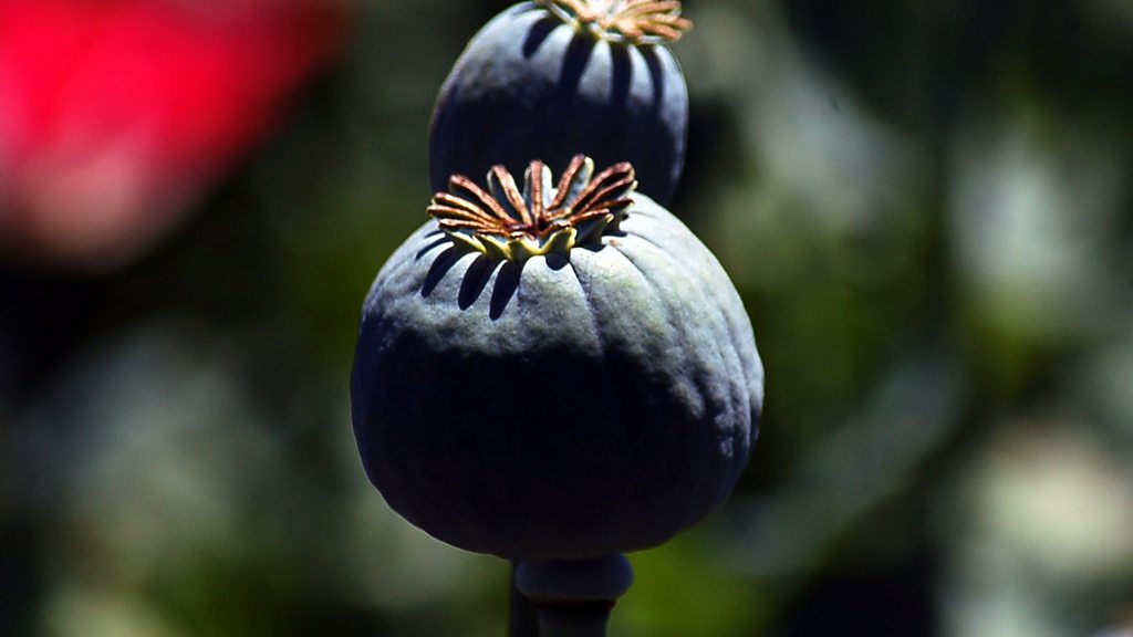 The war-torn country's record harvest last year was enough to meet almost twice the world's demand for heroin and other illicit opiate drugs. Justin Rowlatt reports from Kabul and from rural Afghanistan, as he explores where the opium is ending up, and what can be done about it. Is the Taliban largely to blame, as the US military claims, or do the roots of the opium poppy run broader and deeper than that? Justin speaks to the commander of US forces General John Nicholson, the deputy director of the UN Office of Drugs and Crime Mark Calhoun, and the government national security advisor Mohammad Hanif Atmar. Producer: Laurence Knight (Picture: Opium poppies; Credit: Javed Tanveer/AFP/Getty Images)