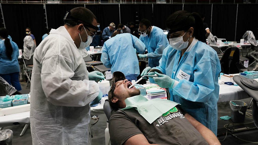 As the cost of healthcare soars in America, Jane O' Brien explores whether it could become a luxury only the wealthy can afford. Jane reports from Baltimore where the gap in life expectancy between the richest and the poorest is one of the widest in the country. But is there another way to make sure the less well off can stay healthy and afford to see a doctor when they need one? (Picture: A remote area medical and dental clinic treats the uninsured n New York State. Credit: Spencer Platt/Getty Images)