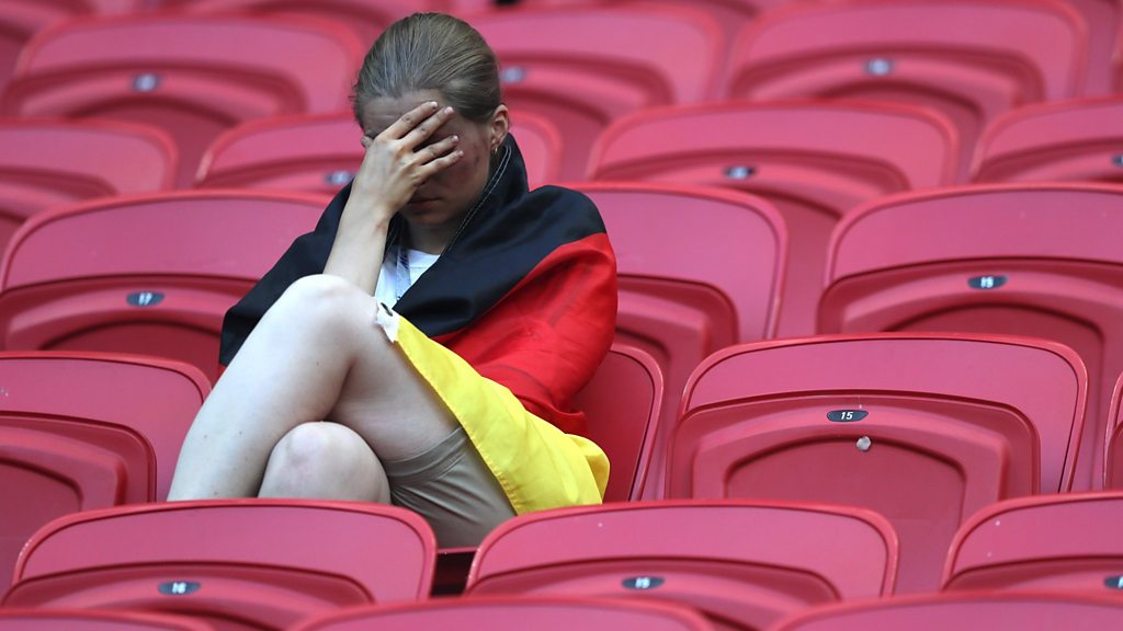 Germany is booming, yet some commentators suggest the nation's loss of confidence on the football pitch may mirror economic angst back home. A shortage of skilled workers, inadequate public investment, a failure to grasp new technologies - these are just some of the criticisms that Germans level at their own economic performance. And at the heart of it is a political crisis over the influx of migrants - something many economists say is sorely needed in this ageing nation. Anna-Katarina Noryskiewicz reports from Berlin, plus presenter Rob Young speaks to Gabriel Felbermayr, director of the Ifo Centre for International Economics in Germany. (Picture: A German fan looks dejected following defeat in the 2018 World Cup; Credit: Kevin C. Cox/Getty Images)