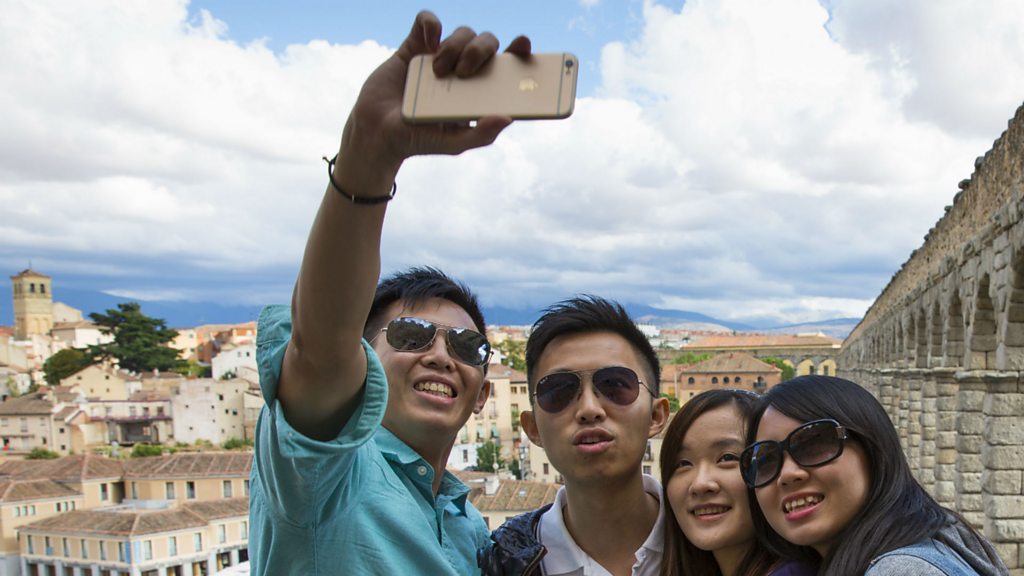 Visitors from the country make up the largest travel market in the world. As only 7% of Chinese people currently have passports, the number travelling overseas is expected to rise. In the UK, there's a growing demand for native British guides providing tours in Mandarin for Chinese tourists. Andrew Speake is a tour guide, who was inspired by his time living in China. We meet some of his guests over a pint of beer and a selection of pies in a traditional English pub. And while most destinations welcome the influx of money the tourists bring, not everyone welcomes the disruption. Alex Scheutz, the mayor of Hallstatt in Austria, says residents there have complained about the noise from tourists using filming drones. Given the huge growth in Chinese people travelling to Europe, we discuss concerns about overcrowding with Professor Wolfgang Arlt, director of the China Outbound Tourism Research Institute. (Picture: Tourists taking selfies at an aqueduct in Segovia, Spain. Credit: Getty Images)