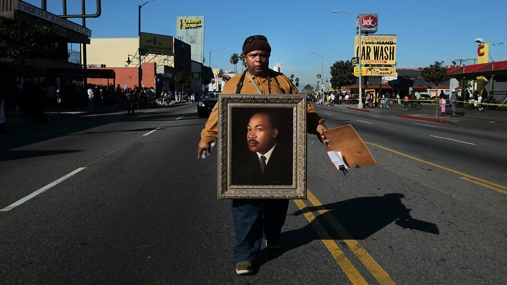 Dr Martin Luther King Jr once had a dream that his children "would one day live in a nation where they will not be judged by the colour of their skin but by the content of their character”. Fifty years on from his assassination, we speak to the artists working to keep the spirit of Dr King and his dream alive. We head to Dr King’s home city of Atlanta, where the award-winning radio presenter Rose Scott speaks to Atlanta's citizens about his legacy. The gospel and soul legend Mavis Staples shares her memories of Dr King. Plus, actor and playwright, Anna Deavere Smith discusses Notes From The Field, her one woman show, which brings to life the stories of ordinary Americans among them current and former inmates, protesters, educators and politicians. We hear from the radical revolutionary artist Dread Scott on the power of protest art and how he creates work that speaks out against oppression in the age of #blacklivesmatter. Presenter: Rose Scott. (Photo: Artist Al Hornsby walks with his painting of Martin Luther King Jr as he participates in the Martin Luther King Jr. parade in Los Angeles, California. Credit: JOE KLAMAR/AFP/Getty Images)