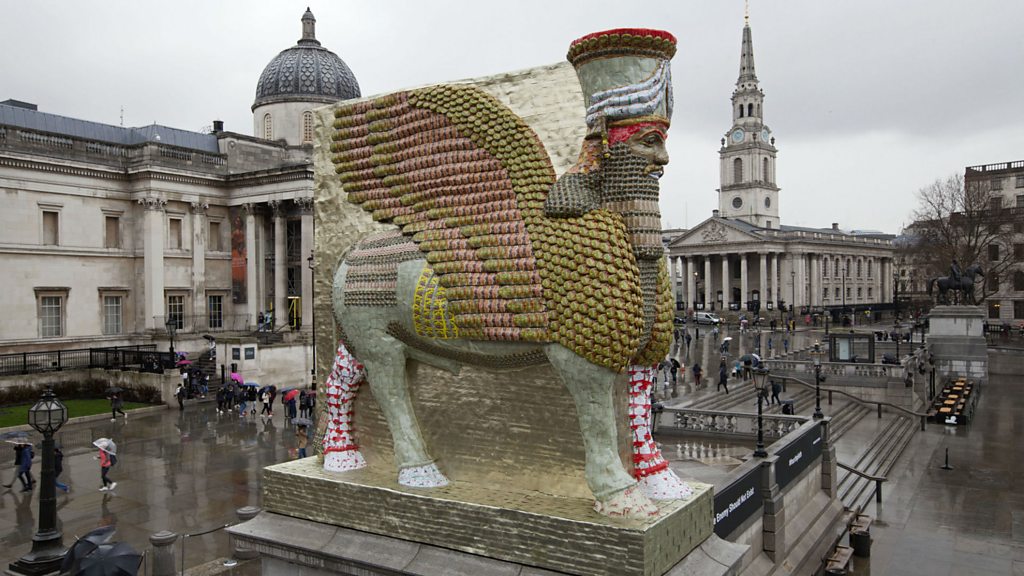 On this week’s Cultural Frontline we explore the artistic response to the continuing conflicts in Iraq and Syria. We join the American artist Michael Rakowitz in London’s Trafalgar Square, as he unveils his new work, a reimagining of an ancient Iraqi artefact, which was destroyed by the so-called Islamic state. The audio investigator and sound artist Lawrence Abu Hamdan tell us why he has helped former detainees of a notorious Syrian prison to create “ear-witness testimonies” of their experiences. The acclaimed Chinese artist Ai Weiwei talks about why he continues to tell the stories of refugees through his work and the Indian singer Harshdeep Kaur shares the story of the artist that inspires her to make music. Presented by Tina Daheley. Picture: Michael Rakowitz's sculpture The Invisible Enemy Should Not Exist on Trafalgar Square's Fourth Plinth in London. Picture Credit: Gautier DeBlonde