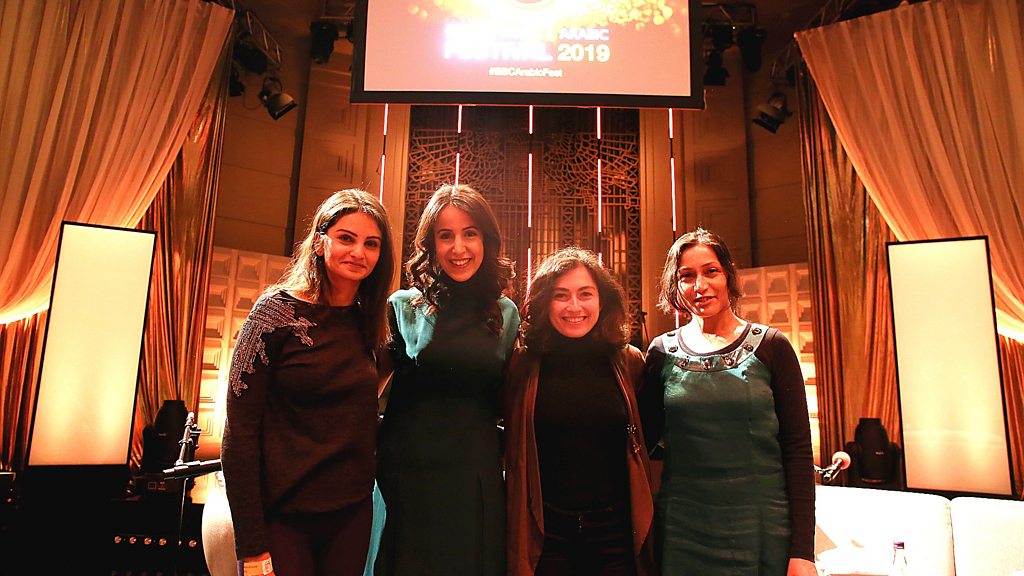 Recent years have seen a new wave of female talent and women-focused stories in Arabic cinema. But what are the types of stories being told and can the portrayal of these stories help influence society across the region? We explore the opportunities and challenges faced by women working in front of and behind the camera. In this current era of #MeToo and #TimesUp, we discuss these and other challenges that arise when showing women on screen, as well as those faced by women within the industry. In front of a live audience in the BBC Radio Theatre, the award-winning journalist, Nawal al-Maghafi, hosts a panel of leading and emerging filmmakers from the region including the award winning director Annemarie Jacir, the actor and film maker Ahd Kamel, one of Morocco’s emerging directorial talents Mariakenzi Lahlou and the film writer and academic Shohini Chaudhuri. Presented by Nawal al-Maghafi Image: Ahd Kamel, Nawal al-Maghafi, Mariakenzi Lahlou and Shohini Chaudhuri at the BBC Radio Theatre in London. Credit: BBC