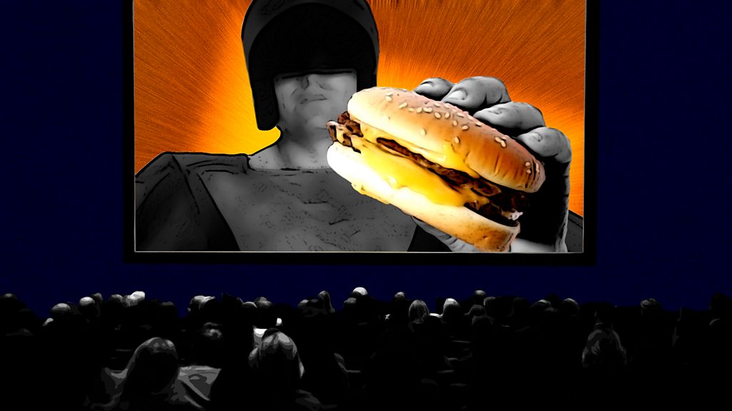 When a cool character cracks open a can of a well-known branded drink on screen, do you barely notice or roll your eyes? Whatever your reaction, their choices may well be influencing yours. Food is a powerful narrative device in film and product placement is highly lucrative. Put the two together and show business becomes big business for the food industry. Emily Thomas finds out how the product placement of food in film has changed over time and where it’s headed, as new technology makes it ever easier for audiences to avoid traditional forms of advertising. She meets industry insiders from Hollywood in the US, Bollywood in India, and Nollywood in Nigeria, to explore how food product placement changes across the globe, and asks how it can enhance and detract from the authenticity of film. What comes first, the brand or the integrity of the script? What happens when they clash? And how much money is at stake? Plus, we ask how the prolific use of product placement in Hollywood changed global perceptions of American food; how it affects our diet choices and... do baddies ever get to eat brands? (Photo: Cinema screen shows superhero character eating burger. Credit: BBC)