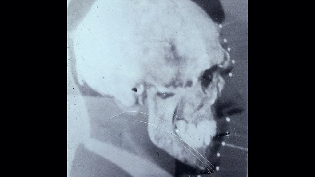 An international panel of experts gathered in Brazil in 1985 to identify the remains of a man thought to have been the infamous doctor from Auschwitz. 'To see that this man was finally in his grave was important' says Eric Stover, part of the team of American and German experts who examined the body from a cemetery near São Paulo. Mengele's family in Germany claimed that it was his. Thomas Pappon has spoken to Eric Stover about the efforts to prove that one of the most wanted war criminals of the 20th century was dead. Image: Josef Mengele with his skull superimposed on top. Used by German forensic scientist Richard Helmer. (Credit: Brazilian Institute Medico-Legal)