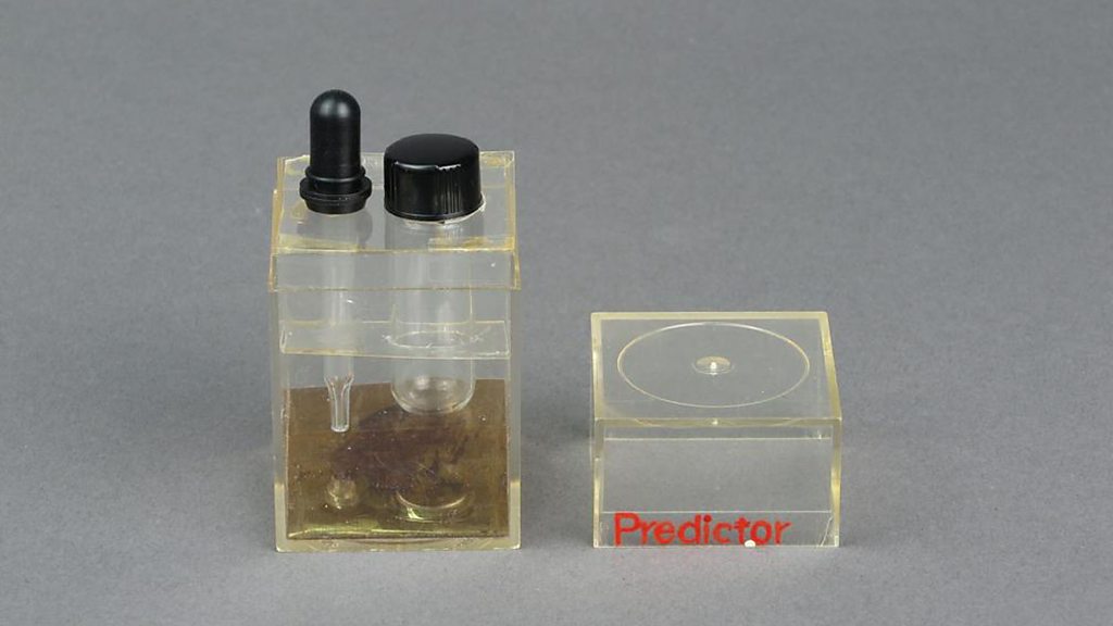 A female designer working for an American pharmaceutical company came up with the idea in the 1960s, but her bosses didn't like it at first. Margaret Crane has been telling Maria Elena Navas how she had to develop her designs on her own after being told that women couldn't be trusted to use a home testing kit properly. Photo: Margaret Crane's first home testing kit. Credit: National Museum of American History.
