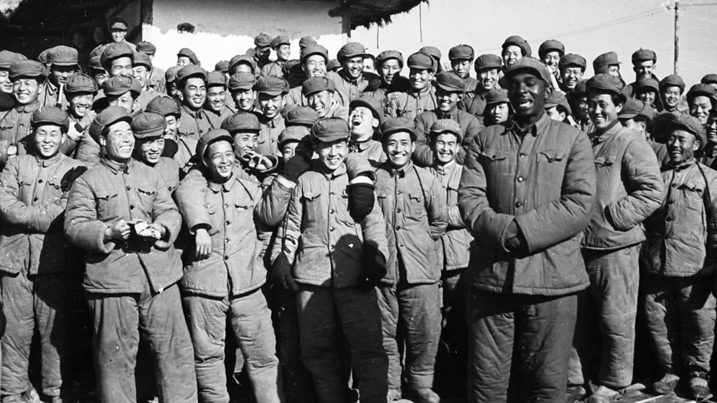 When the Korean War ended, a few American prisoners of war chose to go with their captors and try life under communism, instead of heading home to the USA. David Hawkins was one of them. He told his story to Chloe Hadjimatheou in 2012. Photo: American, and South Korean POWs who refused repatriation. An African-American prisoner is singing a Chinese folk song to entertain his companions at the Songgongni camp while they wait. 1954.(Credit: Sovfoto/UIG via Getty Images)