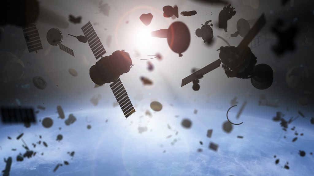 Space is littered with junk – some pieces as small as a fleck of paint, and some as large as a London bus. So much of it is orbiting the Earth, in fact, that it poses a danger to future missions. But how can space be cleaned up? One way could be to catch the junk in a net, or to use a harpoon to grab it. A team in Surrey, in the UK, are launching a special spacecraft to find all of this out. Reporter: Nick Holland Presenter: Dougal Shaw Image: Stock illustration of space debris Credit: Getty Images