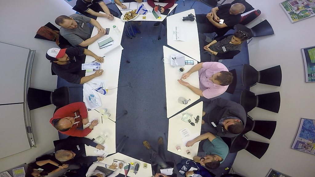 BBC World Hacks travels to Israel and the Palestinian Territories for a special programme for the BBC’s Crossing Divides season. Could attempts to bring ordinary Israelis and Palestinians together be more successful in solving an apparently endless conflict than talks between politicians? We’ll visit the women behind an unusual fashion brand, the school designed to bring two communities together, the ordinary people trying to negotiate their own peace agreement, and explore how the ancient game of backgammon might help bridge divides. Can grassroots initiatives like these really have a meaningful influence? Image: Participants of the peace talks Credit: BBC