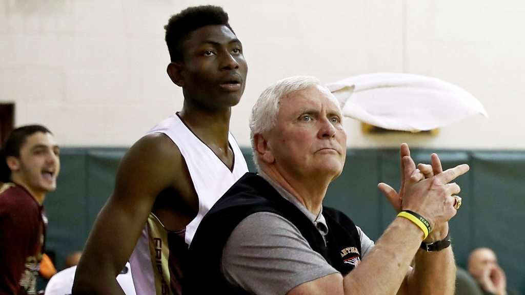 In the late 1960s, parole officer Bob Hurley became basketball coach at St Anthony’s High School in Jersey City, New Jersey. In the years that followed, as the city got poorer and its streets more dangerous, Hurley’s infamously exacting coaching style turned class after class of young men into championship material and put St Anthony’s—a school that didn’t even have its own gym—on the basketball map, winning multiple state championships and hundreds of games. But the success was not just on the court, facing the harrowing effects of the crack and Aids epidemics, Hurley and his wife Christine, plus a host of dedicated nuns, priests, teachers and parents, kept St Anthony’s kids off the streets and made them not only into star athletes, but successful students who, years later, are still giving back to the community that raised them. St. Anthony’s alumnus, former NBA basketball player and one-time Democratic Party politician Terry Dehere tells the story of this very special high school with help from several generations of St. Anthony’s players and supporters. Presenter: Terry Dehere Producer: Ned Carter Miles (Photo: Head coach Bob Hurley of the St. Anthony Friars with a Friars player Credit: Elsa/Getty Images)