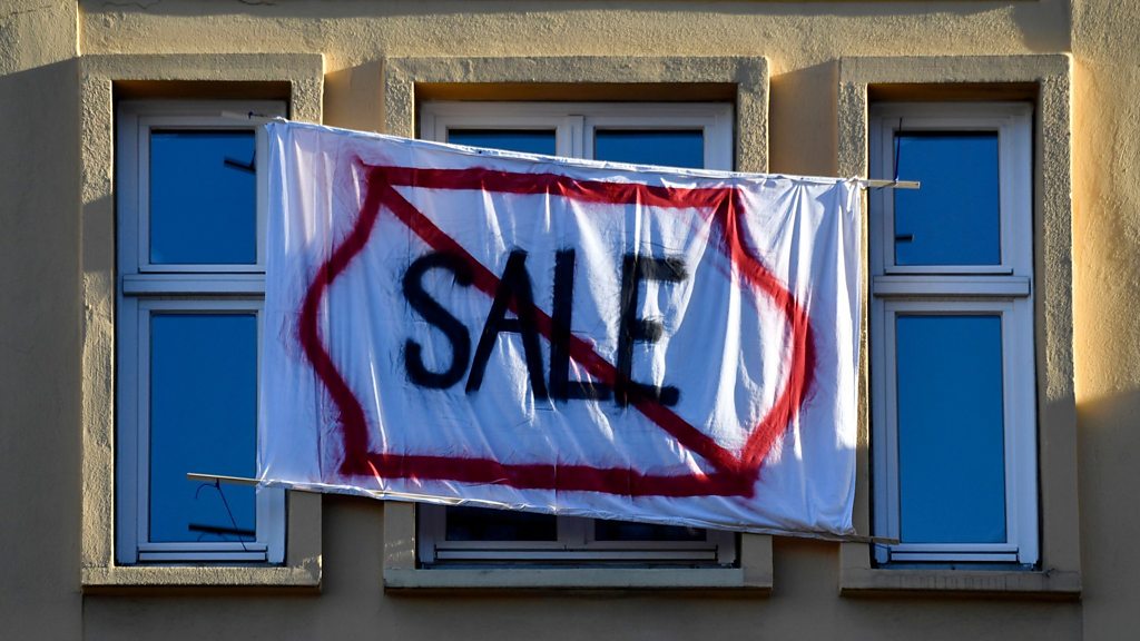 Do rent controls and the expropriation of apartment blocks provide an answer to the increasing cost of housing in the rich world? Such radical measures are being considered in many of the world's biggest metropolises, as more and more residents find themselves being priced out of their home cities. Manuela Saragosa speaks to Tom McGath of the Berlin-based campaign group Deutsche Wohnen Enteignen, who wants the city authorities to seize ownership of housing from the German capital's biggest landlords. But leading urbanist Richard Florida of the University of Toronto says there are better ways of tackling the shortage, not least taking on the "not in my back yard" brigade. (Picture: A banner put up by tenants in Berlin protesting against the sale of apartments; John Macdougall/AFP/Getty Images)