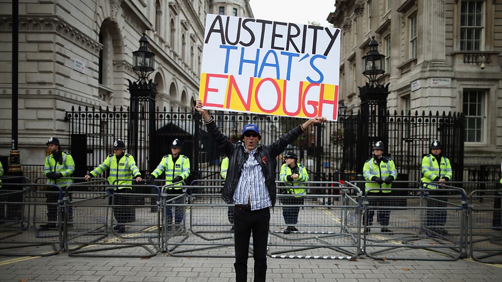 As the UK approaches a general election, both major parties have been promising billions of extra pounds to go into hospitals, social care and other public benefits. All this spells an apparent end to ten years of a policy of limited government spending, also known as austerity. The BBC’s Andy Verity explains austerity and what it was meant to do. But why has it ended now? Economists Vicky Pryce and Ryan Bourne debate the relative merit of austerity, whether it succeeded, or indeed whether it was a good idea to begin with. And if indeed the UK is returning to an age of more spending, Alberto Gallo of Algebris Investments warns those funds ought to be spent wisely. (Picture: A man holds up an anti-austerity banner outside Number 10 Downing Street on October 20, 2012 in London, England. Picture credit: Dan Kitwood/Getty Images)