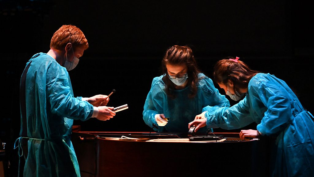 In this episode of the Arts Hour Backstage, Nikki Bedi goes behind the scenes at a concert of cutting edge music. There are surprising sounds from Israeli electric guitarist Yaron Deutsch as he plays the piece Trash TV Trance by the late Italian composer Fausto Romitelli, using a scouring pad on his strings and creates the sound of plants emerging from the void in Black Flowers by composer Chaya Czernowin. German trumpeter Simon Höfele talks about playing the world premiere of Turkish-German composer Kaan Bulak’s Fantasy for Trumpet, the techniques he uses for Kathrin Denner’s piece Shakti, and the importance of protecting his lips. Composer Elena Rykova tells us why she requires a grand piano to be stuffed with balls and a face massager for performances of her piece 101% mind uploading and explains why surgeons' gowns and masks need to be worn by the performers. And the London Contemporary Orchestra is performing with their co-founder and conductor Robert Ames. Young players, including pianist Katherine Tinker and violinist Galya Bisengalieva, reveal how they blend actual instruments and electronics for Paula Matthusen’s haunting piece In Absentia. Photo credit: London Contemporary Orchestra