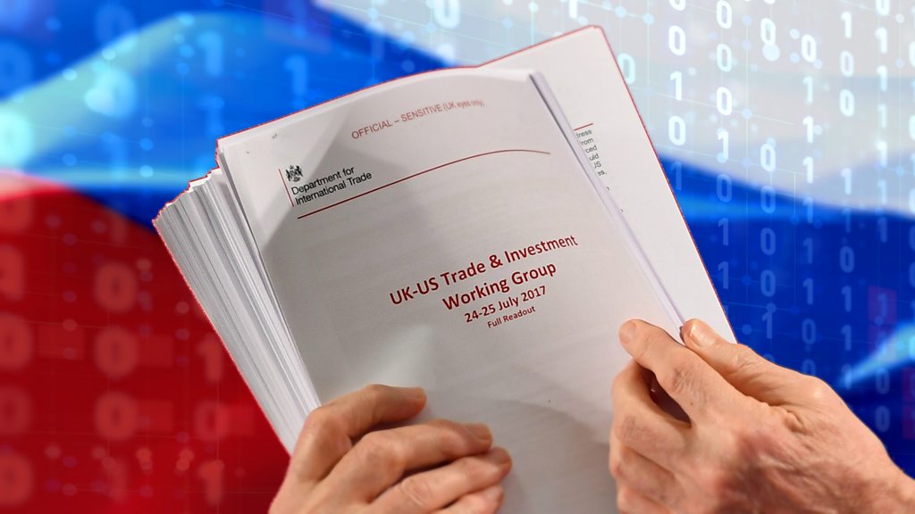 How did a trove of confidential government documents end up on social media… And is Russia to blame? As the UK prepared to go to the polls in December, sensitive documents outlining ongoing US-UK trade talks were published on Reddit. They made for potentially explosive reading and were rapidly seized upon by opposition politicians. But the origin of the leak soon aroused suspicions. When investigators looked at how the documents were spread online, they soon found striking similarities to a disinformation operation originating in Russia. But is there any evidence that the Russian state was behind the leaks? And were the documents authentic? We take a careful look at the clues left behind by a social media user going by the name of “Gregoratior” and uncover a shadowy network of whispers, forgeries, and social media deception. Presenter: Mike Wendling Reporter: Marco Silva (Photo Caption: illustration of confidential UK government documents held in front of a Russian flag / Photo Credit: BBC)