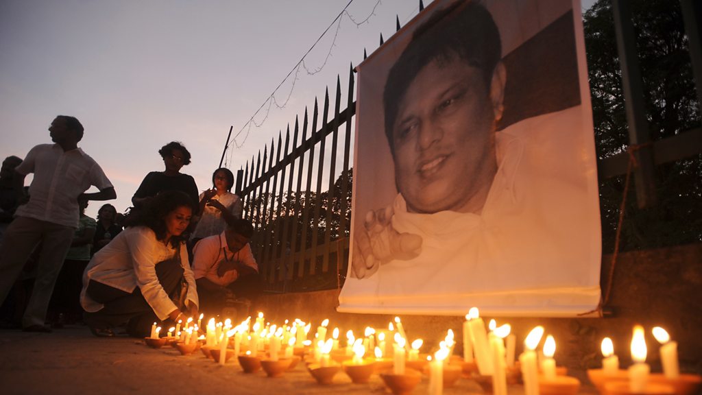 The assassination of newspaper editor, Lasantha Wickramatunga, shocked the world in 2009. Sri Lanka's civil war between the Sinhalese majority and the Tamil minority was nearing its climax when he was shot dead by gunmen on motorbikes. After his murder his newspaper, the Sunday Leader, printed his final article in which he predicted his own death and wrote that the government would be behind his killing. Farhana Haider has been speaking to his widow, Sonali Samarasinghe, about press freedom in Sri Lanka. (Photo: Journalists and well wishers light candles in front of a photograph of murdered editor Lasantha Wickramatunga on the first anniversary of his death 8 Jan, 2010. Credit: Getty images)