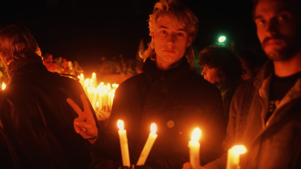 Mass demonstrations in the East German city of Leipzig in October 1989 shook the communist authorities to their core. The protests are seen as paving the way for the fall of the Berlin Wall just a month later. Lucy Burs spoke to Martin Jankowski who was one of the protesters. (Photo:A young East German protesting against the communist government flashes the peace sign. Credit: Peter Turnley/Corbis/VCG via Getty Images)