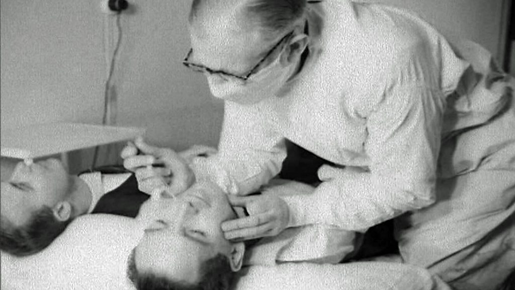 The Common Cold Unit was created after World War Two to find the cause of the illness. Its work depended on thousands of volunteers who came to the unit to catch a cold. Given food, accommodation and some pocket money, many volunteers regarded it as a holiday and came back year after year. Witness spoke to eminent virologist, Professor Nigel Dimmock who worked at the Common Cold Unit in the 1960s. Photo: Two volunteers take part in the clinical trial at the Common Cold Unit in Salisbury, 1958 (PATHE)