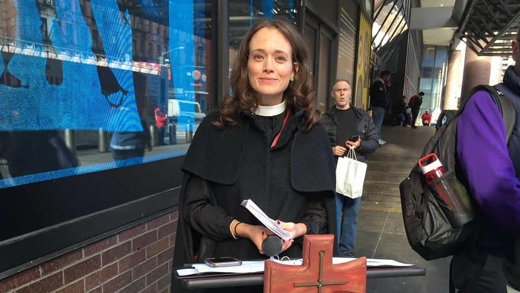 For Easter weekend Rosie Dawson joins a group of the faithful in New York as they follow a very different Stations of the Cross - a series that bears witness to the scourge of sex trafficking - a modern form of slavery - that every year traps thousands of young girls and women in the city. It marks the start of a campaign against hugely controversial plans to make New York the first state in America to completely decriminalise the sex industry. Rosie travels New York’s Via Dolorosa (The Way of Tears) that trafficked girls and women in New York often find themselves taking. Reverend Adrian Dannhauser is the guide on this alternative journey. "If we legalise the industry we will go back to the days of the '70s when you had lines of African-American women lined up in Times Square like slaves on an auction block." Rosie joins the pilgrims at the bus station and at JFK airport, the gateway into the US for so many women trafficked from abroad. We take in the notorious motel where men pimp the women they control. And finally a human trafficking intervention court, which recognises that those arrested on prostitution charges are likely to be victims of sex trafficking, violence and trauma. Producer: Rosie Dawson (Photo: Rosie Dawson)