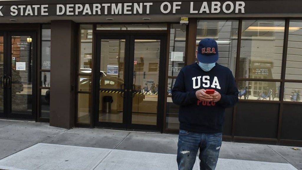 It’s estimated that the coronavirus pandemic will leave a quarter of a billion people out of work this year. Many of the jobs lost may never come back. Elisabeth Reynolds at the Massachusetts Institute of Technology says governments must take more radical action. And with its generous benefits system and flexible jobs market, what can Denmark teach us about navigating the post-Covid jobs landscape? We ask Jacob Kirkegaard, senior fellow at the Peterson Institute. Photo: A man stands in front of the closed offices of the New York State Department of Labour (Credit: Getty Images).