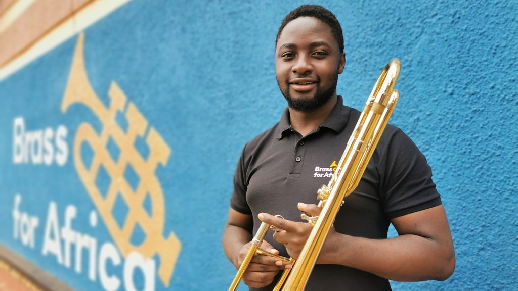 Ronald Kabuye grew up in the Katwe slums of Kampala, Uganda, scavenging for food and trying to sell scrap metal for cash. One day in the street he saw a performance by the M-Lisada marching band, a group made up of children from a local orphanage. Ronald was enthralled. He joined the band, took up the trombone, and learned to read music. Performing gave him an escape and ultimately the opportunity to travel the world and play with some of the world's most influential musicians. Ronald is now a music teacher for the charity Brass for Africa. One of his pupils is Sumayya Nabakooza, who has overcome tough opposition to become one of very few female tuba players in Africa. They both share their story with Outlook's Anu Anand. Picture: Ronald Kabuye Credit: Brass For Africa