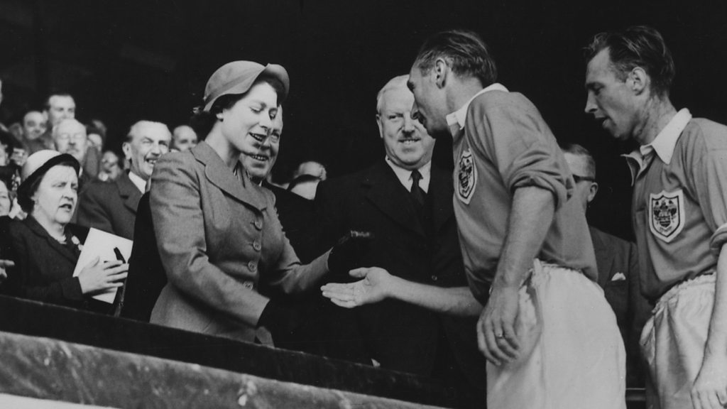 In 1953, Blackpool won one of the most famous FA Cup finals of all time when they came back to beat Bolton 4-3 in extra time. The Blackpool victory was engineered by the legendary Sir Stanley Matthews and later became known as the "Matthews Final". In 2013, Simon Watts spoke to the former Blackpool players Cyril Robinson and Jimmy Armfield. Cyril Robinson died in 2019 and Jimmy Armfield in 2018. PHOTO: Sir Stanley Matthews receiving his winner's medal from the Queen (Getty Images)