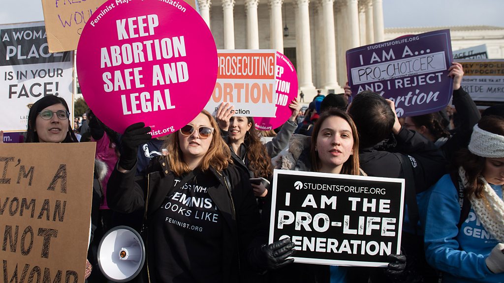 The American state of Alabama, is the new fault-line in the country's battle over abortion. Two Christian women are on polar opposites of the argument. Sarah Howell resolutely opposes abortion. The Reverend Traci Blackmon is just as resolute in her belief that abortion should be legal. In Alabama, a virtual ban on abortion is due to become law in November. It is one of a wave of States that wants control of the procedure to be given back to them. Despite the law on abortion getting tighter in Alabama, its largest city - Birmingham – is pressing ahead with a brand new sexual health clinic. It says it will go ahead and provide abortions even though this flies in the face of the new law. It is against this backdrop that Sarah and Traci discuss how their faith sustains their opposing positions. Presenter: Sherrel Wheeler-Stewart Producer: Siobhann Tighe (Photo: Pro-choice activists hold signs in response to anti-abortion activists outside the US Supreme Court. Credit: Saul Loeb/AFP)