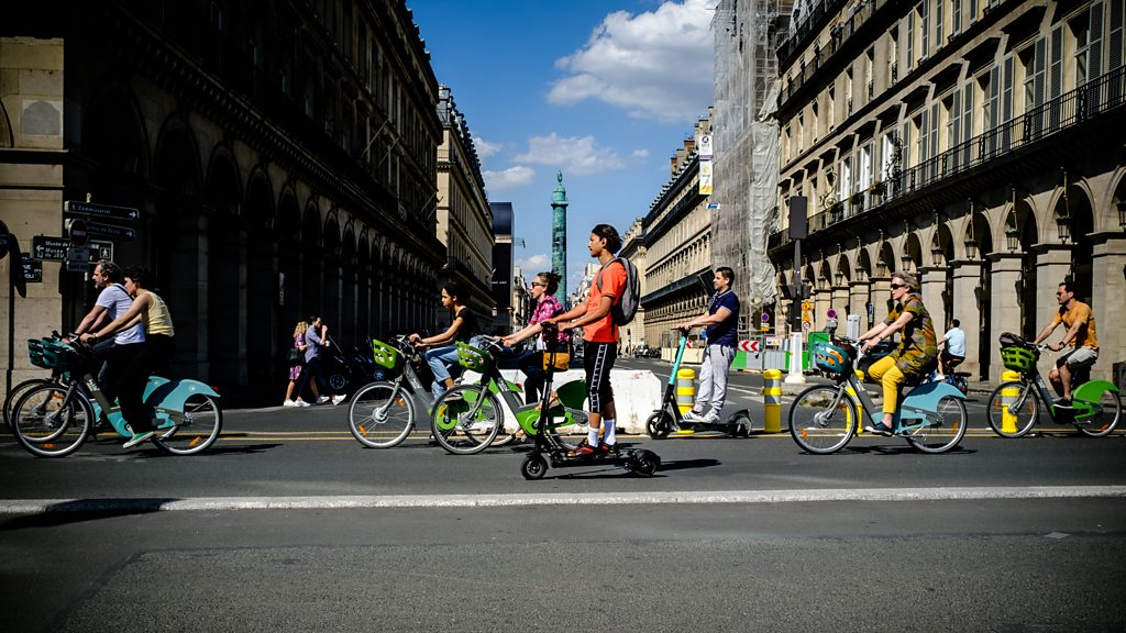 From the bubonic plague and cholera to tuberculosis, pandemics have changed the ways cities have been designed and built. The coronavirus has been no different: with cities all over the world on lockdown, our cities have changed to become quieter, greener, with wildlife returning on an unprecedented scale. Now, with the lockdowns beginning to ease, Kavita Puri asks: what is the future of our cities? Will they return to the way they were - and do we want them to? Producer: Eleanor Biggs Presenter: Kavita Puri (Parisians cycle through the streets of Paris on the Rue de Rivoli, which has been made almost entirely cycleable. Photo:Samuel Boivin/Getty Images)