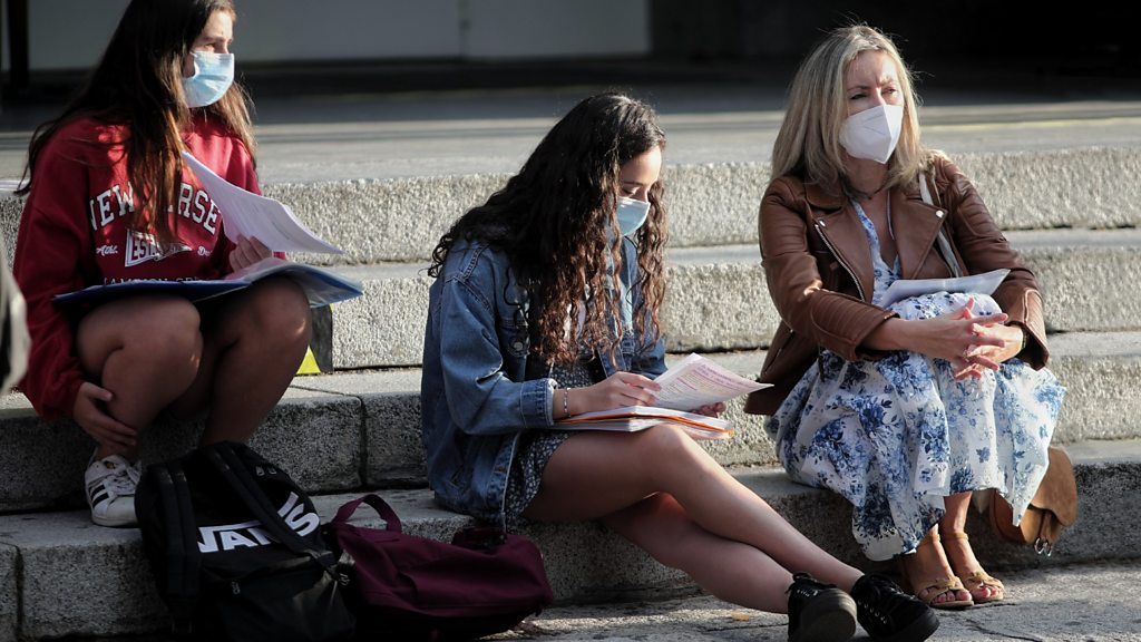 As new students start at universities in many countries around the world, governments are grappling with how to contain a second wave of Coronavirus. Already many universities have put lectures online and students are being told to stay in their rooms. But is this fair? Covid-19 is a deadly virus but not so much for the young. Can or should we keep the world locked down until there’s a vaccine or cure? Or, Tanya Beckett asks: should we learn to live with Covid? (Students wait to start their entrance exams outside the University of Madrid, Spain. Credit: Eduardo Parra/Getty Images)