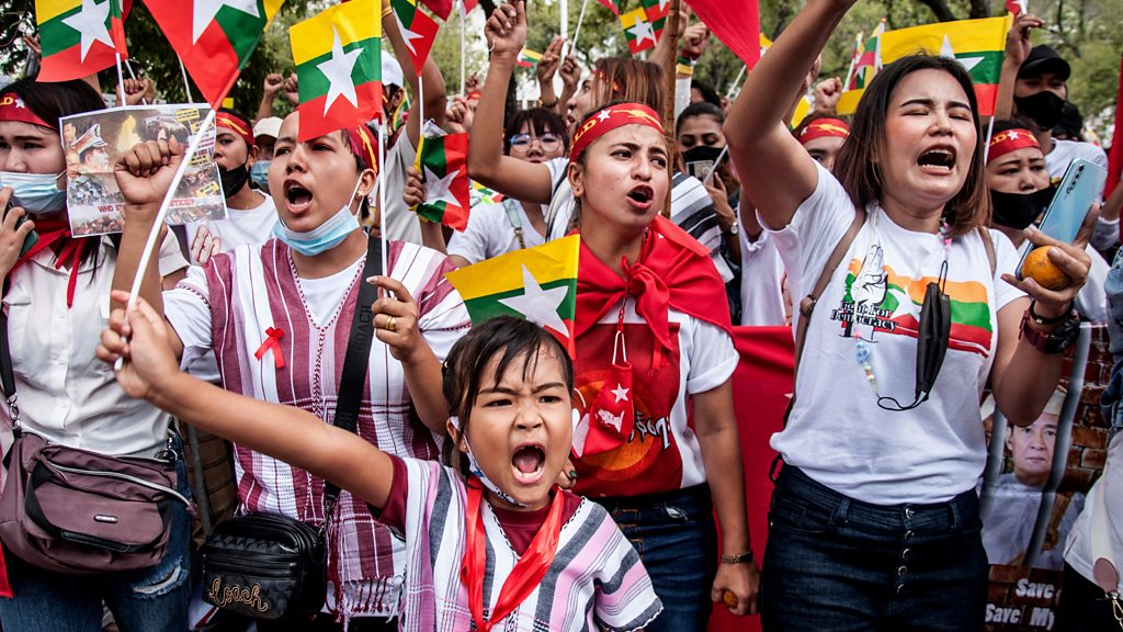 As protests continue in Myanmar against the generals who staged a military coup, and with Aung San Su Kyi under house arrest and facing criminal charges, has the country lost all prospects for a democratic future? With Tanya Beckett. (A little girl shouts slogans with protestors waving flags of Myanmar, 22 February 2021. Credit: Peerapon Boonyakiat /Getty Images)