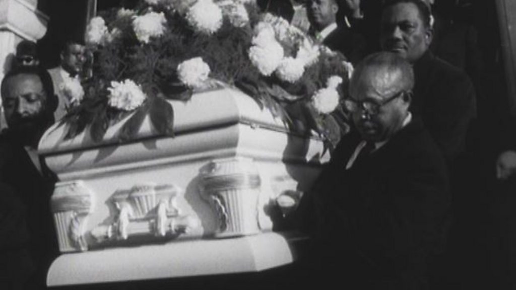 Four young black girls were killed in a racist attack on a church in Birmingham, Alabama in 1963. The 16th Street Baptist Church was a centre for civil rights activists in the city. One of the girls who died was Addie Mae Collins, her sister, Sarah Collins Rudolph was badly injured but survived. In 2013 she spoke to Eddie Botsio about the bombing. Photo: men carrying the coffin of Addie Mae Collins at her funeral. Copyright: BBC