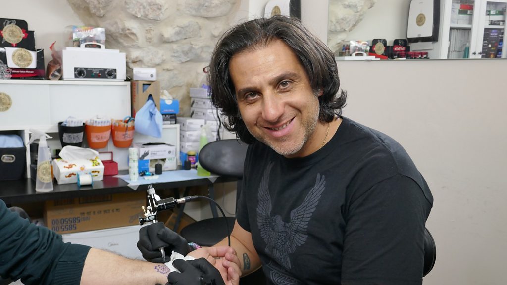 "Every time I tattoo someone, I feel the links of faith, blood and ink in an unbroken chain of thousands of pilgrims, going back hundreds of years" - Wassim Razoouk, 'The Jerusalem Tattooist'. For some, it's a kind of baptism. To others, it's a very personal souvenir. For everyone, it's an indelible mark of pilgrimage to one of the holiest places on Earth: the Old City of Jerusalem. For more than 500 years, Wassim Razzouk's family have been tattooing the pilgrims to Jerusalem. In this edition of Heart and Soul, we'll be hearing his story and the stories of the people who visit his tattoo parlour in the Christian Quarter of the city. Razzouk Tattoo claims to be the only remaining traditional pilgrimage tattoo business in the world. Seven hundred years ago, according to family lore, the Razzouks began tattooing fellow Coptic Christians in Egypt. They continued the practice after moving to Jerusalem, eventually offering their services to Christians of all denominations. Wassim's customers are joining the ranks of innumerable Christian pilgrims to be permanently inked in Jerusalem since the 16th century. Today, almost all request religious designs, many featuring the Jerusalem Cross, a symbol of the Holy City and Holy Land first introduced in the 15th century by the Franciscan order. A tattoo is a very personal statement, and for some people, also a very profound one. Everyone has a different story, and while they're getting tattooed, we'll hear people explain the impact that Jerusalem has had on them, and their reasons for marking their pilgrimage with a tattoo they'll never forget. Wassim says: "People come to us to be part of the history and tradition of the Holy Land. I feel the weight of carrying on and preserving this holy tradition. We are its custodians." (Photo: Wassim Razoouk. Credit: BBC)