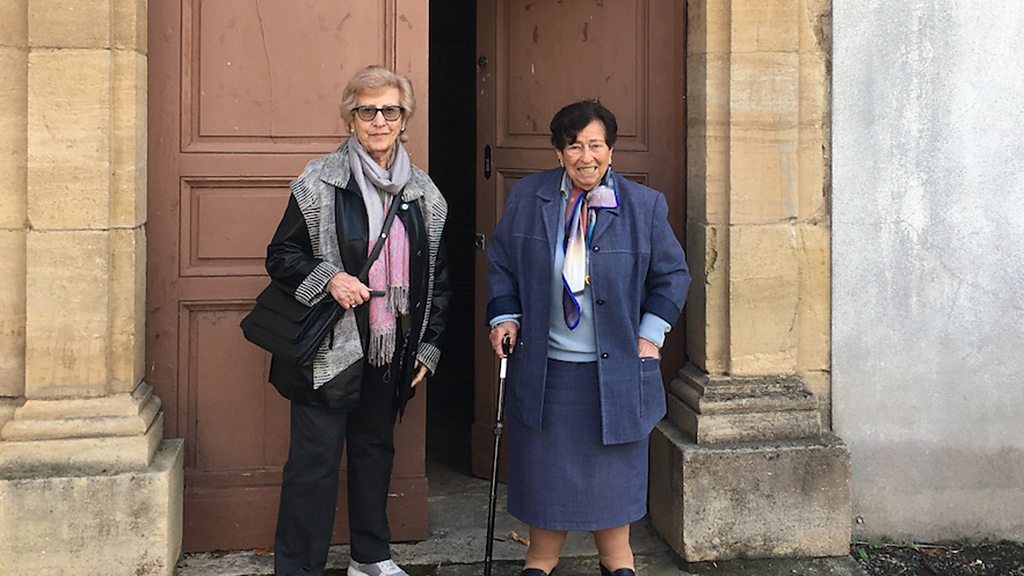 In 1942 in Nazi occupied France Jews were hunted and those helping them could be sent to concentration camps. Despite the dangers a Catholic nun took a stand that saved the lives of 82 Jewish children. Back then Capdenac was a small, picturesque town in the south of France, around 140 miles north of Toulouse. But it was also a strategic military location for the Germans because of its railway junction - not a place you would expect to find a group of nuns hiding Jewish children. Led by Sister Denise Bergon they hid the children for two years in the convent boarding school of Notre Dame de Massip. Out of around 15 nuns, only four knew the identities of the children taking shelter. Three survivors talk of their unique bond with Sister Denise and how they escaped the clutches of French collaborators and an SS Division which would become notorious for its massacres in the area. Sisters Annie Beck and Helene Ulrich, and Albert Seifer speak of the confinement that changed their lives forever and the love that saved them. Later honoured as one of ‘Righteous Among the Nations’ by the Israeli Holocaust Memorial Yad Vashem Denise Bergon decided not to become a bystander. Presenter Alice Doyard met the survivors in France and tells the story of the woman they remember forever as “Our Mother Of The War”. Producer: Niamh Hughes Presenter: Alice Doyard (Photo: Annie and Helene at the Convent Gate)