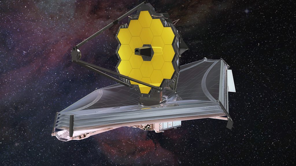 The launch of the James Webb Space Telescope is only days away. Scheduled for lift off on 22 December, the largest and most complex space observatory ever built will be sent to an orbit beyond the moon. James Webb is so huge that it has had to be folded up to fit in the rocket. There will be a tense two weeks over Christmas and the New Year as the space giant unfurls and unfolds. Its design and construction has taken about 30 years under the leadership of NASA’s Goddard Space Flight Center. With its huge 6.5 metre-wide primary mirror, the giant observatory promises to extend our view across the cosmos to the first stars to shine in the early universe. That’s a vista of Cosmic Dawn: the first small clusters of stars to form and ignite out of what had been a universe of just dark clouds of primordial gas. If the James Webb succeeds in capturing the birth of starlight, we will be looking at celestial objects more than 13.5 billion light years away. Closer to home, the telescope will also revolutionise our understanding of planets orbiting stars beyond the solar system. BBC science correspondent Jonathan Amos reports from the European Space Agency’s launch site in French Guyana from where James Webb will be sent into space. He talks to astronomers who will be using the telescope and NASA engineers who’ve built the telescope and tested it in the years leading to launch. Producer: Andrew Luck-Baker Picture: James Webb Space Telescope, Credit Northrup Grumman