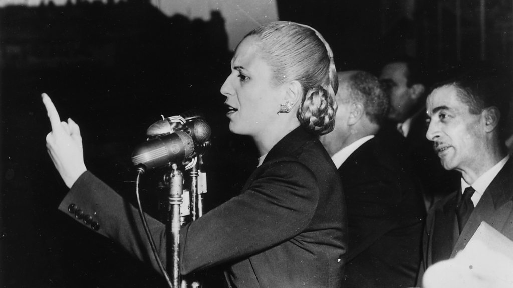 Eva Peron rose from a childhood of poverty to become one of the most powerful figures in Latin America. An illegitimate small town girl, she smashed class and gender barriers to become Argentina’s controversial First Lady. Loved and loathed, Rajan Datar discusses her life, work and remarkable afterlife with biographer Jill Hedges, historian Ranaan Rein, and cultural theorist Claudia Soria. [Photo: Eva Peron in 1951. Credit: Keystone/Getty Images]