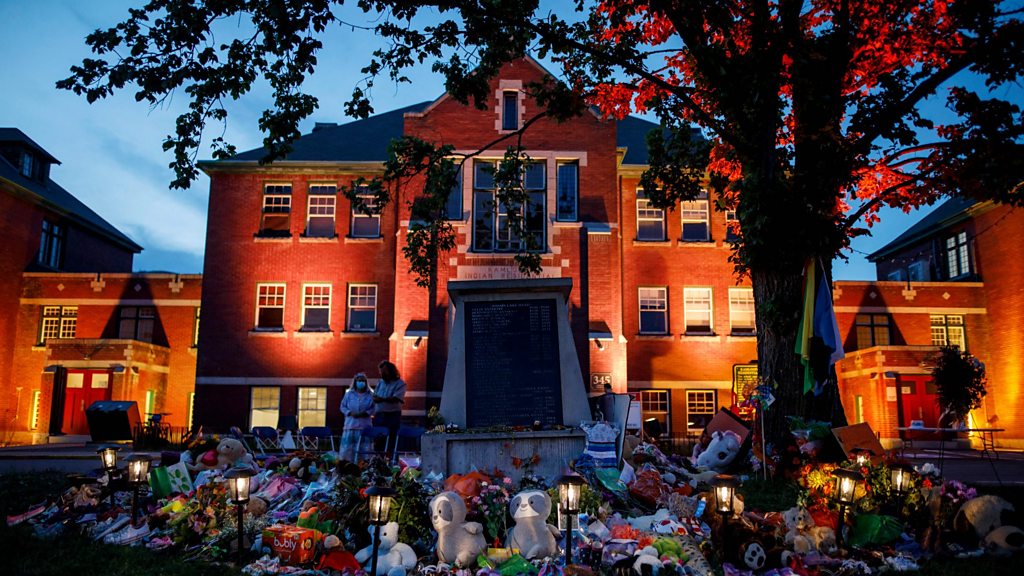 The recent discoveries of unmarked graves at the sites of so-called Indian Residential Schools has put Canada’s treatment of its indigenous peoples back under the spotlight. For more than a century, tens of thousands of children were forced by the state into a religious school system that split families and brutalised the children in its care. Tanya Beckett looks at the history of the residential schools and asks why so many children died there. Producer: Rob Cave and Olivia Noon (former Kamloops Indian Residential School, British Columbia, Canada, 2 June 2021. Credit: Cole Burston/Getty Images)