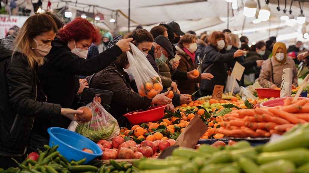 Turkey is suffering from an economic crisis with rampant inflation and a weakening lira. At the same time, there is a refusal by the central bank to raise interest rates. With elections due to be held next year, will the government change course? With Tanya Beckett. Producer Bob Howard. (shopping for fruit and vegetables at a street market in Instanbul,Turkey, 8 January 2022. Credit: Cemal Yurttas /Getty Images)