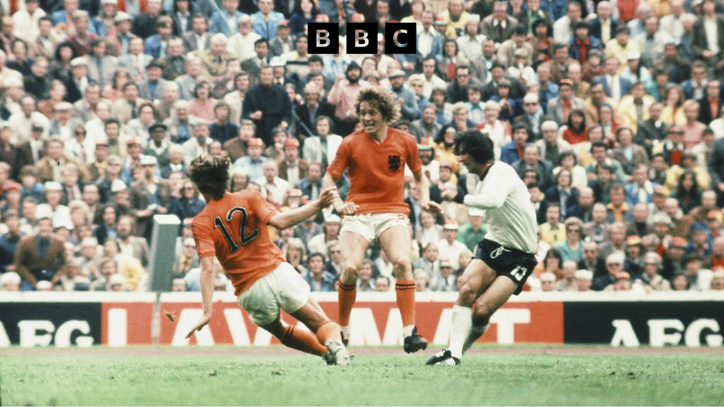 Dutch football star Ruud Krol tells Matthew Kenyon about the Netherlands’ campaign at the 1974 World Cup. The team, coached by Rinus Michels and featuring the great Johan Cruijff, stunned the football world with the quality of their performance, as they brought the ‘Total Football’ philosophy which Michels had instituted at Ajax to the global stage. They are still remembered as one of the greatest ever international teams. (Photo: German Gerd Muller beats Ruud Krol (12) and Arie Haan to score in the World Cup final on 7th July 1974 in Munich. Credit: Getty Images)