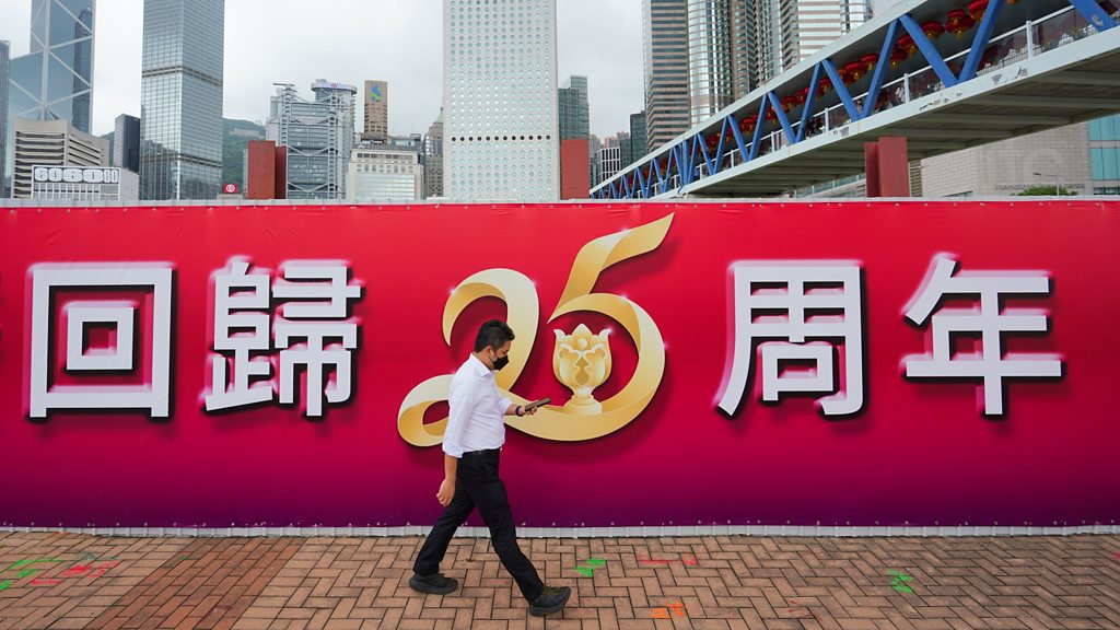 Twenty-five years since the handover of Hong Kong from the British back to China, journalist and former BBC Hong Kong correspondent Juliana Liu explores the cultural impact in Hong Kong itself and in the diaspora. Billy Tang is the new Executive Director and curator of Para Site, one of the oldest and most active independent art institutions in Asia. He tells us about the appeal of working in and shaping the culture of Hong Kong. Arts and culture journalist Vivienne Chow explores what’s happening in the Hong Kong cultural scene, from the revival of Cantopop, to the decision of some artists to leave the city. Samson Young is a Hong Kong based artist and composer with a fascination for sound and experimentation. He represented Hong Kong in the 2017 Venice Biennale and the energy, intensity and history of the city has influenced him and his work. He describes his latest project and what it’s like to make art in Hong Kong today. With the introduction of the National Security law and last year, the film censorship law, many artists have chosen to leave Hong Kong. Filmmakers Ka Leung Ng and Ching Wong first met making the dystopian speculative fiction film Ten Years, which won Best Film at the Hong Kong Film Awards in 2016.They’ve now come together again, and earlier this year created the first Hong Kong Film Festival UK. They explained why they felt it was important to show films that are no longer able to screen in their native Hong Kong. (Photo: A poster celebrating the 25th anniversary of Hong Kong's handover. Credit: China News Service/Getty Images)
