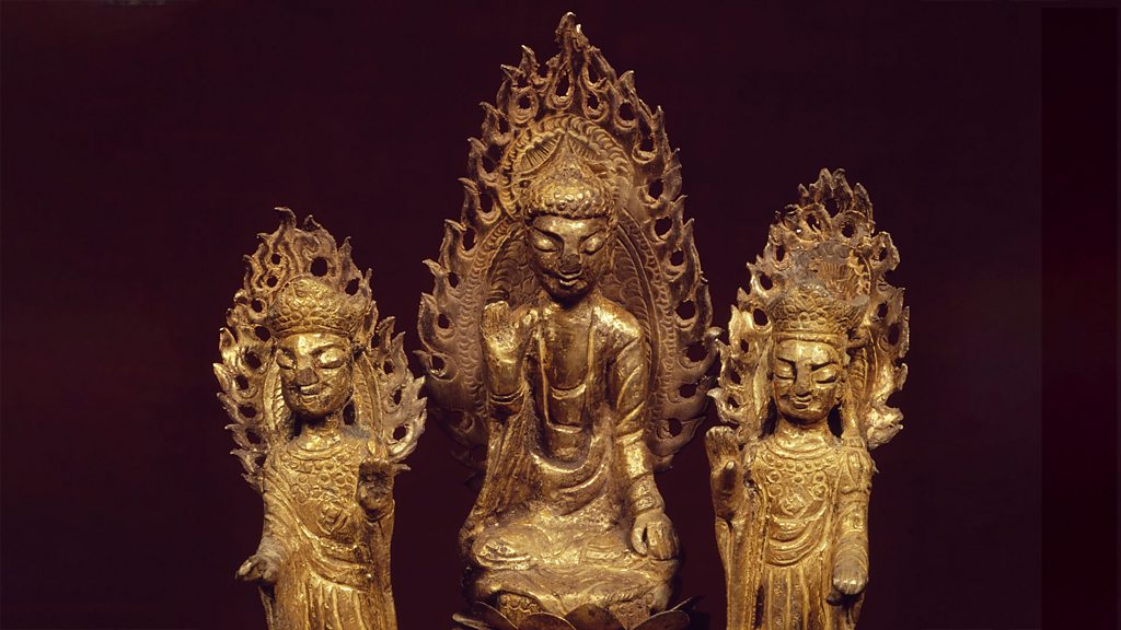 Today Korea is divided between North and South, but the founding of the Koryo Kingdom in the 10th Century was the first time the peninsula was truly united and when a sense of nationhood emerged. The Koryo Kingdom is remembered for some of the finest cultural achievements in the country’s history; it developed the world’s first printing press – 200 years before the German inventor Johannes Gutenberg came up with his own version, and it is also a period marked by beautiful ceramics and art. But what is less well known is how progressive its politics and society were; promotion was based on merit, women were given greater rights, and monarchs ruled through co-operation. It was also a turbulent time with personal intrigue and back stabbing at court, and constant threats of foreign invasion. Rajan Datar finds out more about the Koryo Kingdom. He is joined by Sang’ah Kim, the Korean Collections’ Curator at the British Museum in London; Dr Charlotte Horlyck, reader in Korean Art History at SOAS, University of London, who has written about the collecting of Koryo Art in the early 20th Century; Edward (Ned) Shultz, professor emeritus in Asian Studies at the University of Hawaii, and Dr Juhn Ahn, associate professor in Buddhism and Korean studies at the University of Michigan in the United States and author of Buddhas and Ancestors: Religion and Wealth in 14th Century Korea. Producer: Anne Khazam (Photo: Trinity, gilded bronze statues from Goryeo dynasty, 10th-11th Century, Korean civilisation. Credit: DeAgostini/Getty Images)