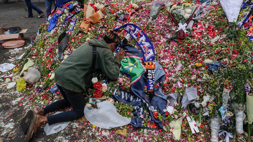 Indonesia continues to search for answers and comfort after more than 130 fans died at a football match. There appears to have been a deadly combination at the Kanjuruhan stadium in Malang, East Java, of over-crowding, tear gas being fired by police and blocked exits during the ensuing panic. The president of Fifa, the game’s world governing body, called it a “dark day” for football. Host James Reynolds has spent the past week hearing from survivors, who describe how they feel lucky to be alive and now want nothing more to do with football. He also brings together two Indonesian sports broadcasters for their assessment of what went wrong. The match between local club Arema FC and Persebaya Surabaya will forever be remembered as one of the world’s worst football disasters but unfortunately there have been others in the past. Herbert Mensah was chairman of a football club 21-years-ago when 126 lives were lost at the Accra Sports Stadium in Ghana. In January 2022, Irene Ndombi was at a match in Cameroon where at least eight people were killed and 38 injured in a crush. We brought these two survivors together to hear their reactions and to discuss how they have coped with their own emotional aftermath. “You don’t even want to hear or to imagine that a situation like that is occurring elsewhere,” says Irene. “Because each time you hear there is an accident or a stampede, it automatically brings you back to that same scene.” (Photo: A person cries over a pile of flowers as people gather to remember the victims of a deadly stampede at Kanjuruhan Stadium, in Malang, East Java, Indonesia, 05 October 2022 Credit: Mast Irham/EPA-EFE/REX/Shutterstock)
