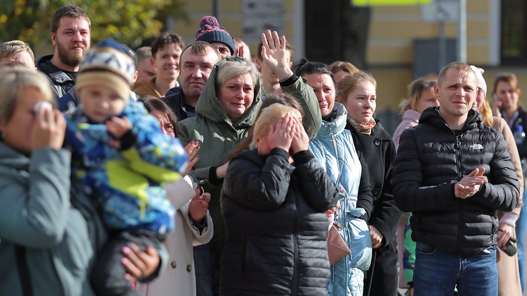 As missile strikes by Russia have intensified across Ukraine, we bring together Russians to hear their thoughts on the war. President Putin last month also called for a boost to troop numbers through a ”partial mobilisation”, meaning the call up of 300,000 army reservists. Host James Reynolds hears how families are being torn apart due to opposing views on what is happening. For one young woman, Valya (not her real name) it has created a rift between three generations. She is against the war and wanted her brother to escape to safety rather than be called up. Her parents disagreed, as did her grandparent. Her brother has now gone to fight and she is no longer on speaking terms with her father. “We hear that young men die, that they have been given bad equipment,” says Valya. “I’m afraid my brother will simply die and my parents are convinced that nothing will happen to him, that he will go through some training and will return safely because the government told him so.” Valya no longer lives in Russia. And we also bring together two Russian men who decided to avoid mobilisation and become temporary exiles. They discuss how why they are now living in Kazakhstan and Armenia. Plus, two Russian women in London and Moscow - one anti-war, one pro-war - discuss how they see the conflict. One tells why she would want her grandson to go and fight for Russia. (Photo: Relatives and acquaintances of Russian reservists react at a gathering point in the course of partial mobilisation of troops, in the town of Gatchina in Leningrad Region, Russia October 1, 2022. Credit: Igor Russak/Reuters)