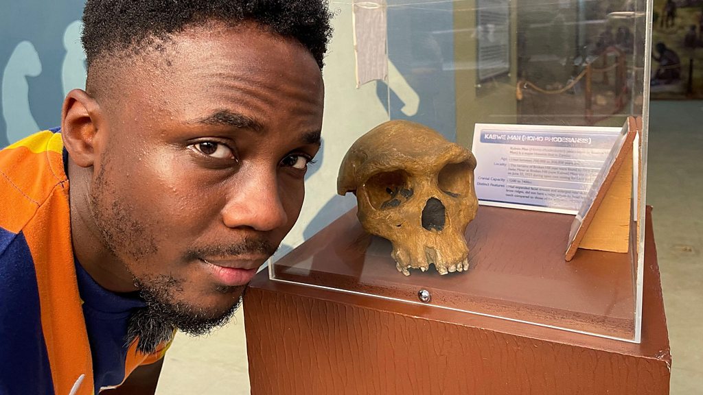 Travelling from Lusaka to the Gwembe Valley and then on to Kabwe, Kema Sikazwe hears from people living in communities where artefacts were taken. In the shadow of the Kariba Dam, Kema meets people who were forced from their land when the valley was flooded who explain how promises made at the time have not been kept. Finally, at the lead-mining site where the Broken Hill Skull was discovered in Kabwe 1921, Kema meets former workers who describe how their homes remain contaminated, more than 25 years on, the UN estimates they are among 300,000 people living on toxic ground. Producer: Andy Jones and Will Sadler A Radio Film production for BBC World Service (Photo: Kema Sikawaze stands next to the Broken Hill man skull. Credit: Radio Film)