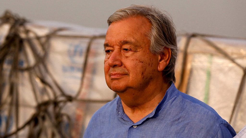Justin Rowlatt puts your global climate questions to UN Secretary General António Guterres. Image: UN Secretary General António Guterres in Karachi, 10 September 2022 (Credit: Akhtar Soomro/Reuters)