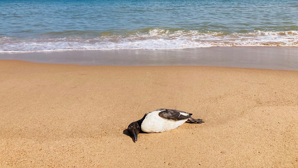 Science in Action returns to H5N1, the fast spreading strain of bird flu which has caused devastation in the sky, sea, and land over the last few months, with no end in sight. Roland visits Skomer Island and the coast of Wales where sea bird colonies are threatened and hundreds of guillemots have washed ashore dead, struck down by bird flu. We also hear of outbreaks on Finnish fur farms where controversial plans are in progress for culls of wild birds, of mysterious infections of domestic cats in Poland, and bird flu causing brain swelling in grey seals. Plus, we get an update on efforts to vaccinate condors in California against the disease. Photo: Dead Guillemot Credit: BBC Presenter: Roland Pease Producer: Ella Hubber