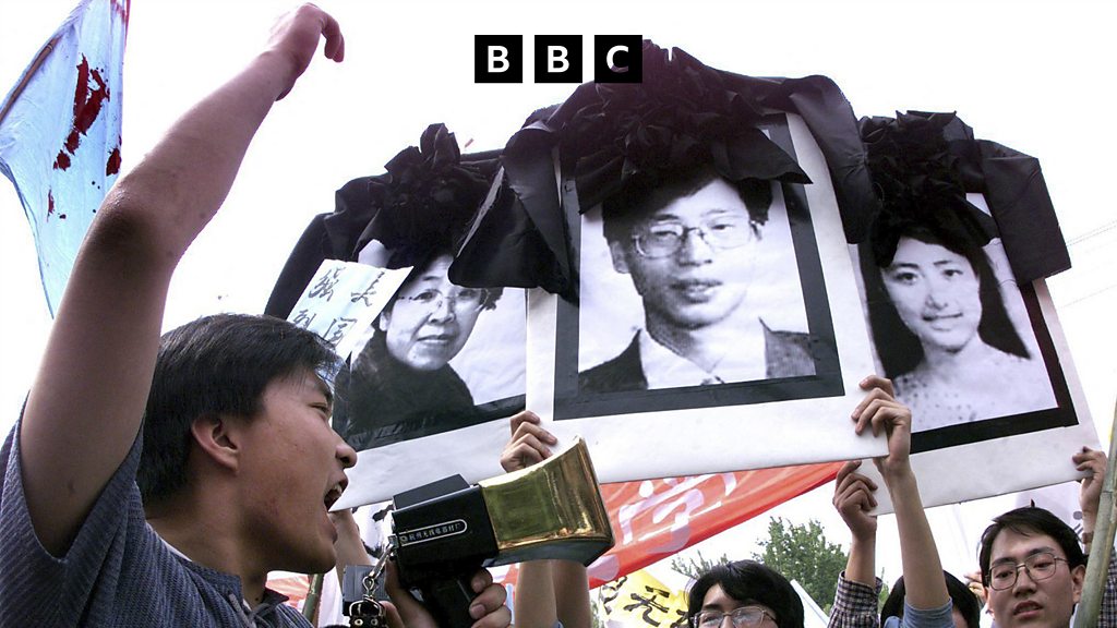 In 1999, NATO carried out a bombing campaign in Yugoslavia during the Kosovo War. On 7 May, five American bombs hit the Chinese embassy in Belgrade, killing three people and damaging relations between China and the West. Ben Henderson speaks to Hong Shen, a Chinese businessman, who was one of the first on the scene. (Photo: Protesters hold pictures of Chinese journalists killed in the embassy bombing. Credit: Stephen Shaver/AFP via Getty Images)