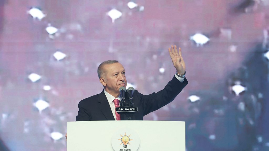 We travel to Turkey's Anatolian heartland to find out whether the region which helped propel President Recep Tayyip Erdogan to power in the early 2000s will do it again in May's crucial election despite widespread disappointment with the government's preparation and response to February's deadly earthquake. (Photo: Turkish President Tayyip Erdogan greets the audience during a meeting of his ruling AK Party to announce the party's election manifesto ahead of the 14 May elections, in Ankara, Turkey, 11 April, 2023. Credit: Presidential Press Office/Reuters)