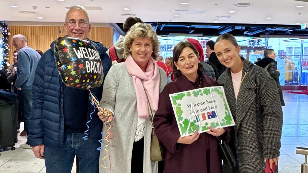 Videos capturing the joy and emotion of families reuniting at Dublin Airport for the festive season have received thousands of views online. We speak to the team behind the cameras to find out why they wanted to share the messages of love. Also, meet the 'bubbliest' wedding judge in Texas. Judge Adam Swartz has gone viral for his ceremonies. We visit two rare grapefruit trees serving as a memorial to a community elder, who brought them from Grenada to the UK. Plus, a new world record for the number of golden retrievers in the same place at the same time and... knock, knock... it is time for a Christmas carol. Presenter: Celia Hatton Music: Iona Hampson (Photo: Families reuniting at Dublin airport. Credit: Dublin Airport)