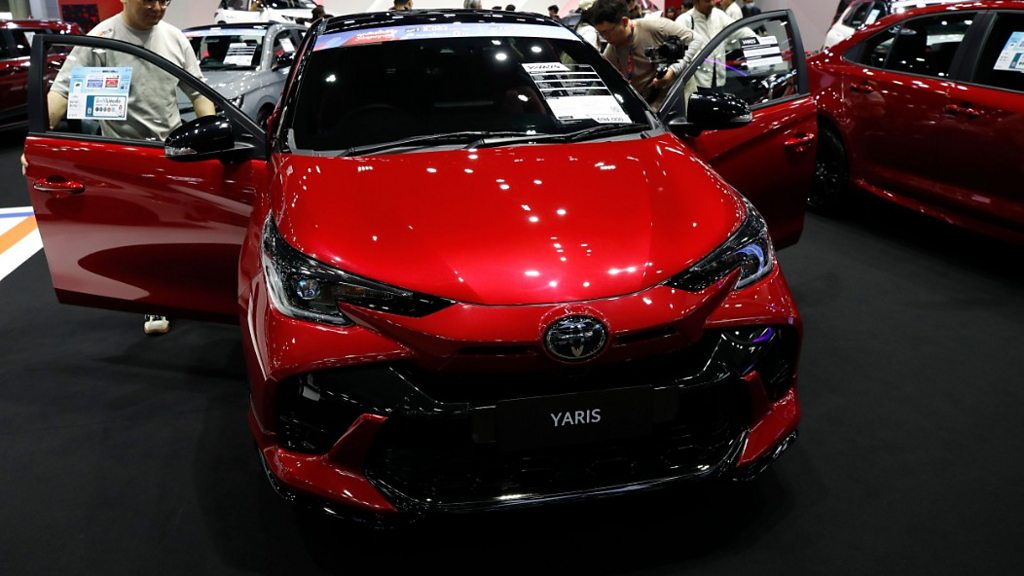 The Japanese auto giant Toyota says its global sales set a new record last year, despite trade tensions. What did Toyota do differently to others? Also, in a week where gold hit another record high, Rahul Tandon hears about what a gold boom means for Ghana. And, strong iPhone demand boosts Apple's profits, as Microsoft faces pressure over spending on data centres. (Photo: Members of the media inspect a Toyota Yaris car displayed during a media preview at the 46th Bangkok International Motor Show 2025 automobile showcase in Nonthaburi, on the outskirts of Bangkok, Thailand, 24 March 2025. Credit: by RUNGROJ YONGRIT/EPA-EFE/REX/Shutterstock)